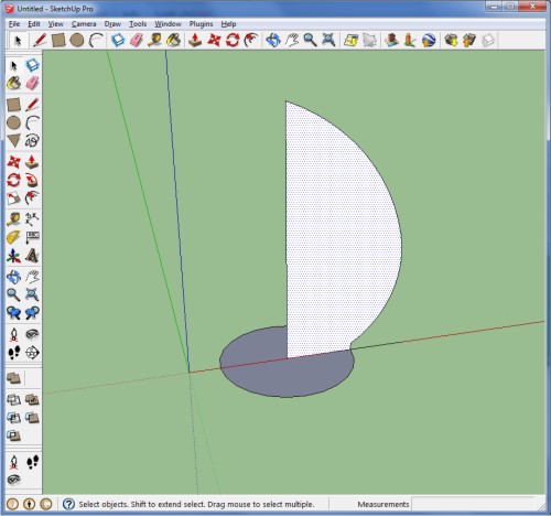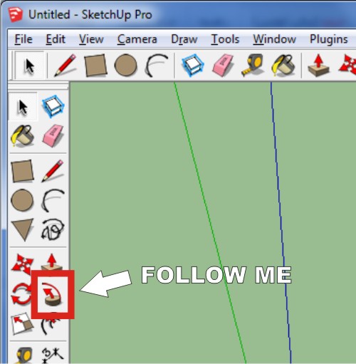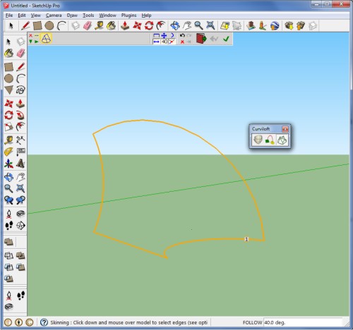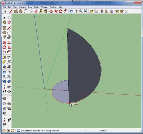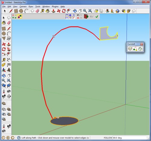 بعد از انتخاب follow me صفحه مون رو انتخاب میکنیم و بعد موس رو روی منحنی حرکت میدیم تا حجم همراه با موس و محیط دایره تشکیل بشه: